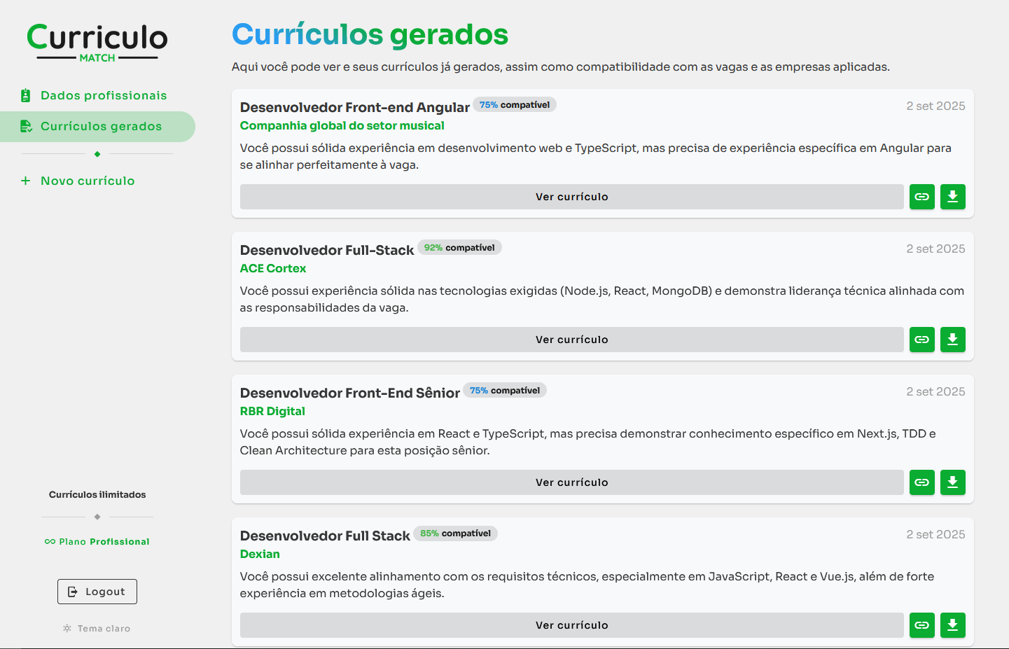 CurriculoMatch usa IA avançada para criar currículos que passam pelos filtros automáticos